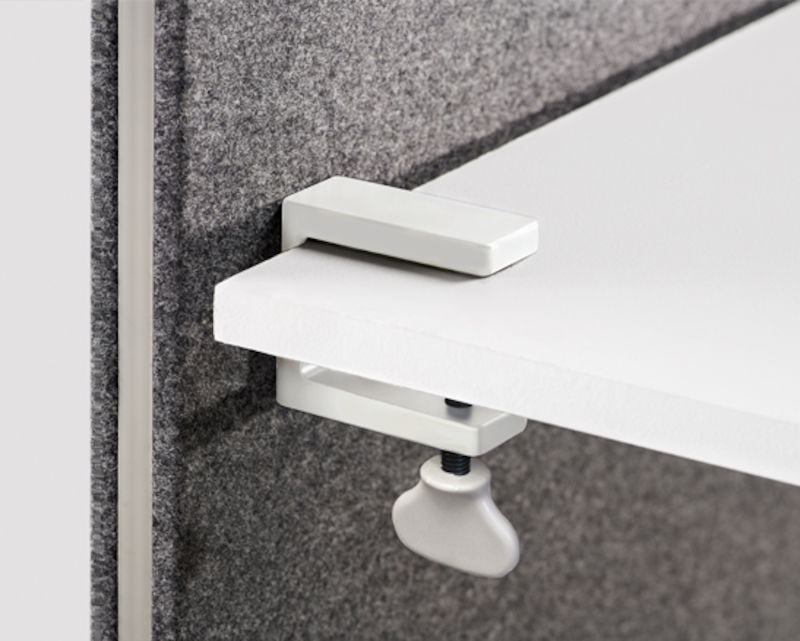 Bordsbeslag Ease frontmonterad till Edge bordsskärm, vit. Passande Edge Plus Bordskärm. Max skivtjocklek 35 mm.Passar bordsskiva med tjocklek: 16-35 mm