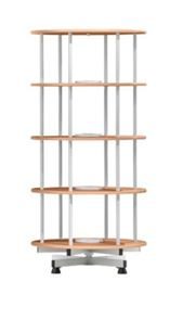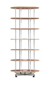 Permkarusell, Ø 800 mm, H 2390 mm, 6 hyller, bøk . Hyller er helt vridbare. Har plass til ca. 80% flere permer sammenlignet med sammenlignbare hyller Lett, lydløst løp Enkel dreiing uten kulelager. Stabil stålkonstruksjon, lysegrå (RAL 7035) lakkert. Hylleplater av lakkerte sponplater. En kant forhindrer at permene sklir ut. En dekkplate beskytter permene mot støv. Lastekapasitet per hylle 70 kg. Totalbelastningen er på 300 kg. Bestykning med hjul er bare tillatt for snurrer med maks. 4 hyller. Hjulene kjøpes separat.