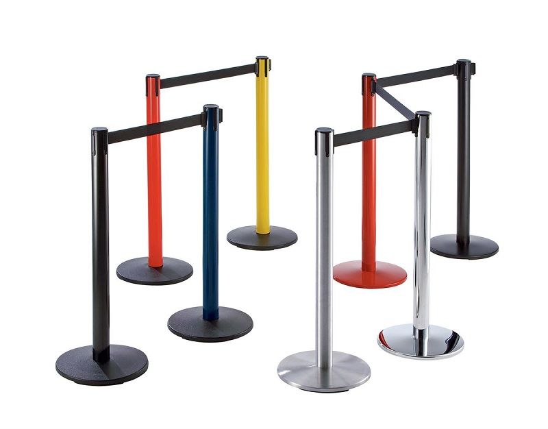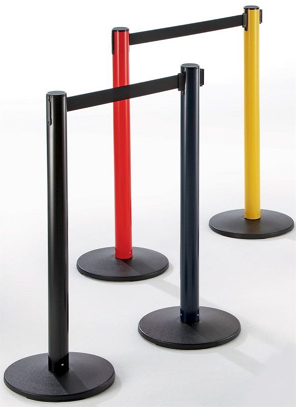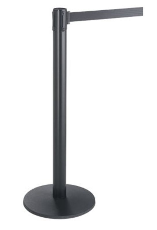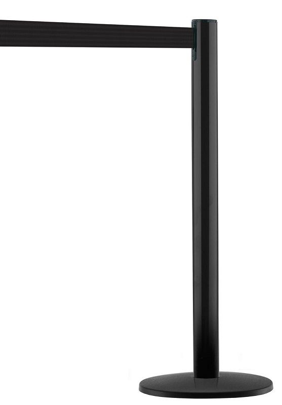 Avsperringsstolpe med bånd, plast, svart. Før strømmen av besøkende, avgrens flater, sperr av rom. Overbeviser gjennom førsteklasses kvalitet og funksjon. Alle systemer har et patentert bremsesystem for avsperringsbånd: Båndene trekkes mykt inn, det minsker slitasjen på båndene og dermed øker levetiden. En låsing forhindrer uønsket løsning av avsperringsbåndene. Fot Ø 345 mm. Båndene til stolpene kan kombineres med hverandre og i tillegg kombineres med veggkassetten. 4-veis system. Avsperringsbånd svart. Tung støpt fot med svart plastdekning. Stolpehøyde 950 mm. Uttrekk maks. 2000 mm, anbefalt 1700 mm.