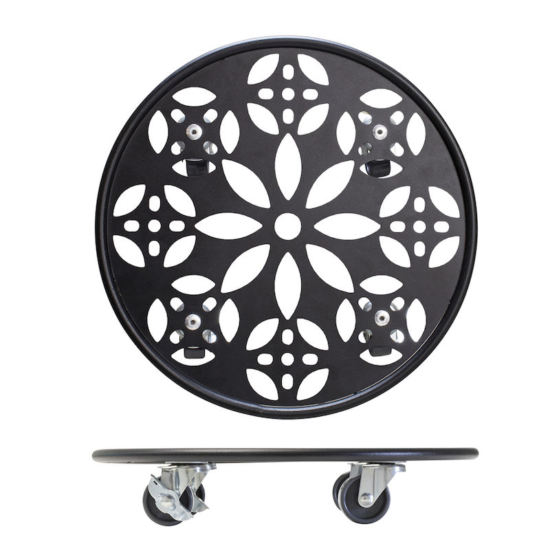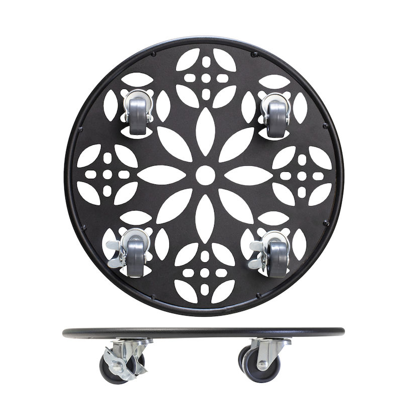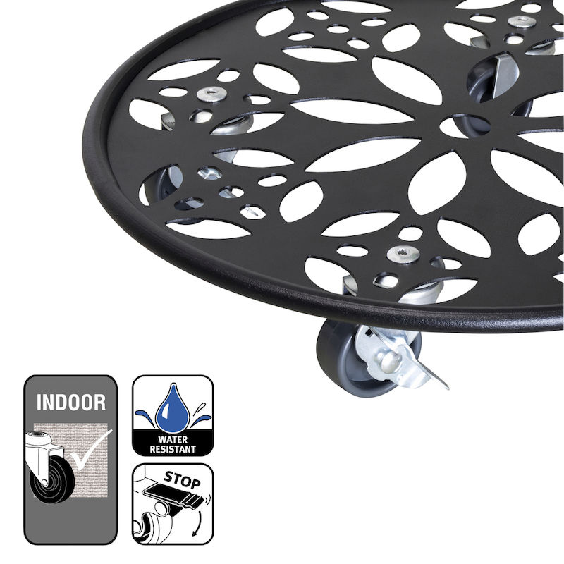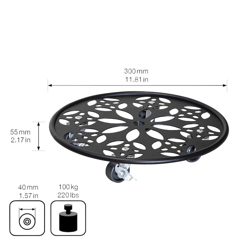 Pottetraller stål svart Wagner, lastekapasitet 60 kg, rund, Ø 300 mm, svart. Den robuste og formstabile lasteflaten på pottetrallen BLACK EDITION er produsert i massivt, svart, pulverlakkert stål.