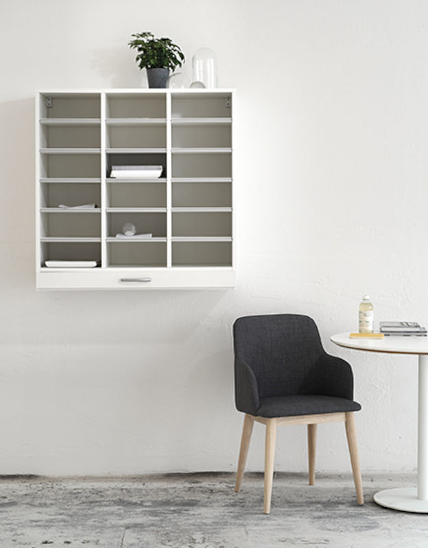 Posthylle Jorun, veggmodell, med faste hylleplater. Med våre posthyller får dere god orden. Velg mellom gulv, vegg eller benkmodell, bred eller smal modul. Hyllen finnes i flere utførelser, for eksempel med mulighet for praktisk plate som kan trekkes ut for avlastning ved sortering, låsbart underskap og låsbare luker. Finnes i bøk, bjørk eller hvit laminat. Leveres montert med sokkel, ben finnes som tilbehør. Hyllerommene er brede og dype og hvert rom er utstyrt med vinklet kantlist i aluminium med spor til merking av f.eks. navn. Har dere behov for flere rom kan dere enkelt doble antallet ved å kjøpe ekstra hylleplater. Hyllene leveres ferdig montert.