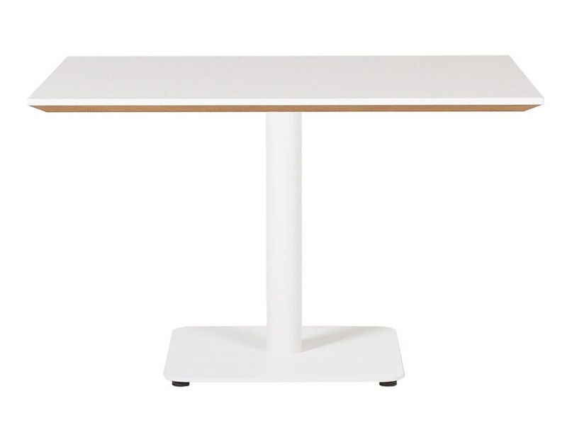 Sofabord Trend, 800x800 mm, firkantet fot, hvit. Moderne sofabord med plate i hvit laminert MDF. Platen har hvit kantlist med 30 graders faset kant for et pent utseende. Stativ finnes i krom, svart og hvit utførelse. Rund eller firkantet fot.