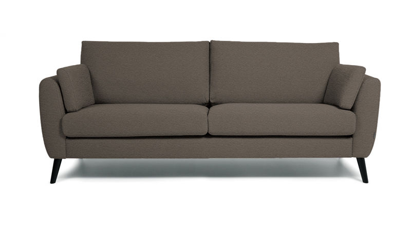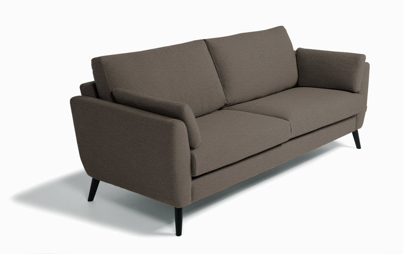 Sofa Arild, 2,5-seter, grått stoff. En god sofa i klassisk design med høy kvalitet og slitesterkt materiale, ben i svartbeiset tre. Passer både i entré/resepsjon, venteværelset eller hvilerommet. Rammen er bygget av massivt tre i alle bærende deler. Putenes kjerne består av et høyelastiskt tilskåret kaldskum, trukket med fibervatt. Ryggputer i kulefiber. Sofaen kan fås i flere farger trukket i stoff eller skinn. Stoff: 56% bomull, 12% lin, 12% polyester, 8% akryl. 53700 Martindale. Skinn: Standard.