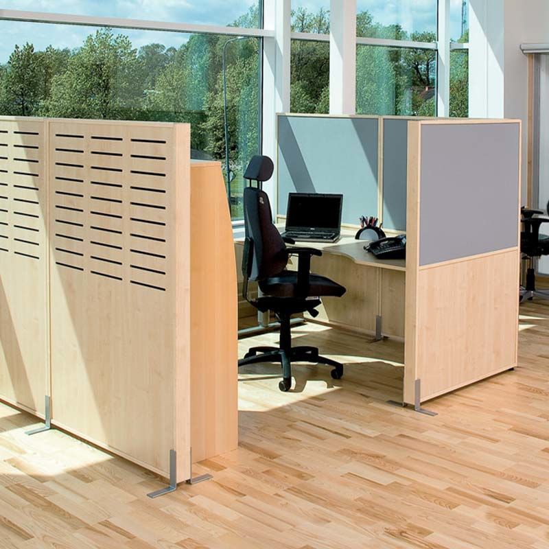 Silence med stoff fungerer også som oppslagstavle. Stoffet finnes i en lysegrå farge. Du kan velge mellom treverk i bjørk eller hvit laminat.
