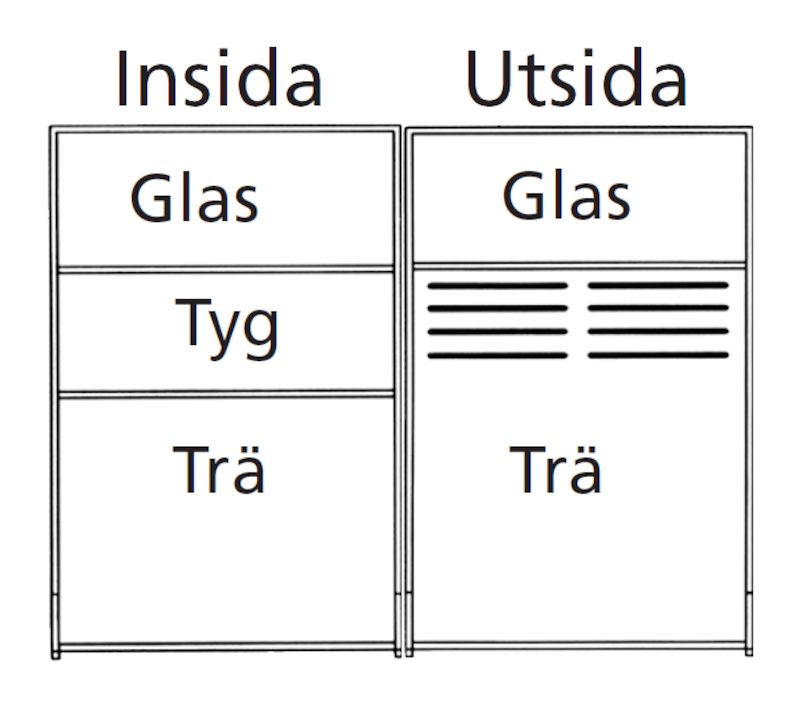 Tre/tre med glassoverdel