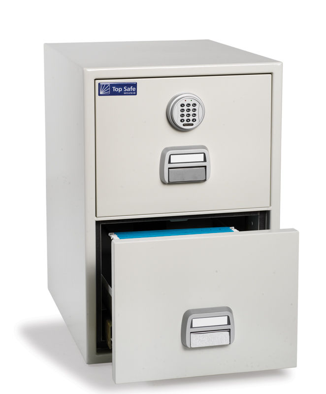 Hengemappeskap Gjende, brannklasse 90 P, 2 skuffer. En brannsikker oppbevaring av hengemapper. Finnes i 2, 3 eller 4 skuffer utførelse. Testet og godkjent for 1 times brannbeskyttelse av dokumenter i brannklasse 90 P iht. NT Fire 017. Håndtak med integrert kortholder til formasjon. Med sikkerhetslås eller elkodelås.