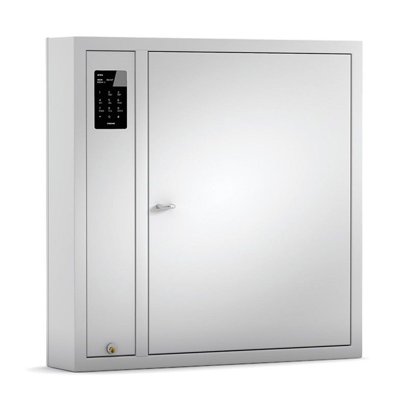 Nøkkelskap type B, B4, 1 rom med 216 kroker, elektronisk kodelås. Nøkkelskap med elektronisk kodelås. Grunnskap type B: Hvert nøkkelrom åpnes med en kode på 1 - 6 tegn. Display med enkel menyhåndtering. Systemet kan håndtere opptil 1200 koder og lagre opptil 4000 hendelser (du kan se hvem som har eller har hatt en nøkkel osv.). Rapporter kan vises på displayet. Skapene kan også kobles til PC med vårt PC-program. Produsert av 1,5 mm stålplate. Jordet stikkontakt følger med, ikke montert. Må monteres av godkjent elektriker. SEMKO- og CE-godkjent.