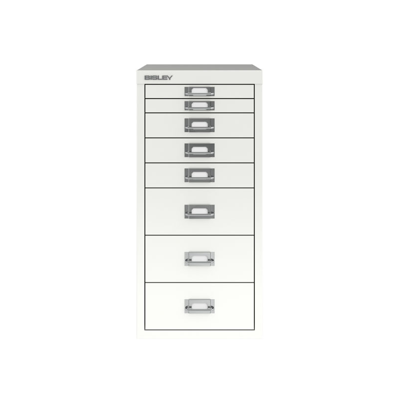 Skuffeskap BISLEY Classic 29 med 8 skuffer A4, hvit. 3 ulike skuffehøyder. Bisley skuffeskap gir en ryddig og praktisk oppbevaring på kontoret. Produsert i lakkert stål. Kan plasseres direkte på gulvet eller kombineres med sokkel eller hjul. Finnes i to grunnstørrelser, basert på de klassiske dokumentstørrelsene A4 og A3. Finnes i 3 ulike høyder avhengig av størrelsen. Etikettholder på hver skuff. Skuffeinnsatser kan kjøpes som tilbehør så du kan holde orden på dine småting.