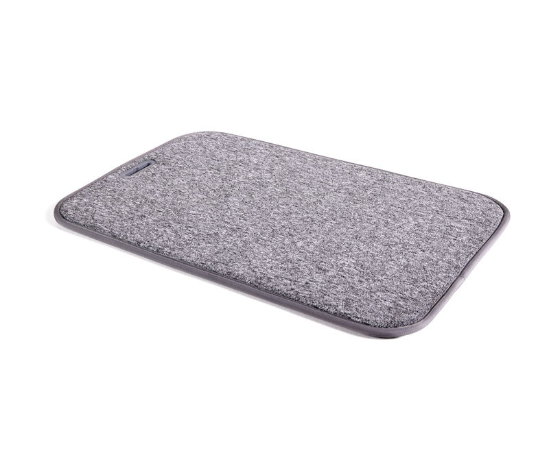 Avlastningsmatte Plain, LxB 840x550 mm, grå. Ståmatte, dempende og avlastende matte for god komfort ved stående arbeid. Undersiden er av polyvinyl og overflaten av kraftige fibre. Lett å vaske og holde ren. Finnes i to farger, grå og svart. Tykkelse 20 mm.