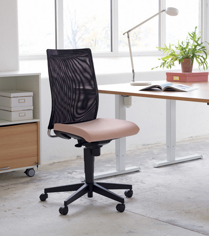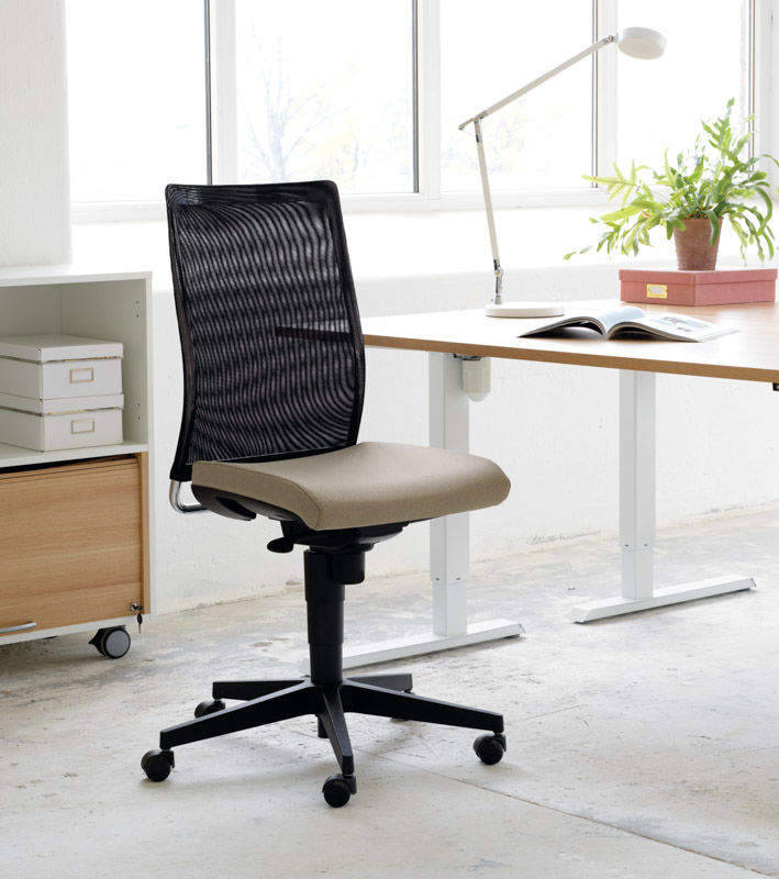 Kontorstol Hamilton, nettingrygg. Med høy og bred nettingrygg får ryggen både støtte og luft når man sitter lenge. Armlener som tilbehør. Leveres med hjul for harde gulv.