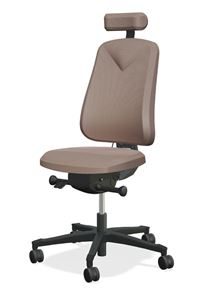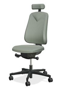 Leveres alltid med nakkestøtte, hjul for harde gulv, justerbart, integrert korsryggstøtte. Fotkryss i svart lakkert aluminium.
