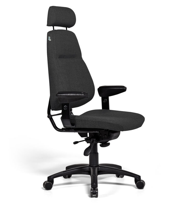 Kontorstol Sverigestolen 814 XL, stoff Capture mørkegrå, med høyere rygg og større sete
