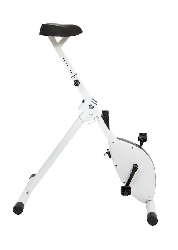 Kontorsykkel Ylva, LARGE, hvit. Denne unike, patenterte kontorsykkelen er kombinert med et ståbord og gir en sunn dose fysisk aktivitet mens du arbeider.