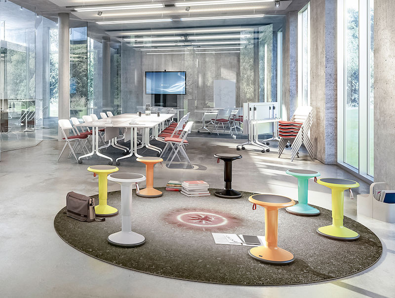 Moderne balansestol i unik design for aktiv sitting på kontoret. En fleksibel løsning når man arbeider i kortere perioder ved skrivebordet, for informasjonsmøter eller der det ikke er noen permanente sitteplasser. Balansestolens runde sete følger kroppens bevegelser og bidrar til dynamisk sitting. Trinnløs høydeinnstilling 45-63 cm. Produsert i polypropylenplast. Gjenvunnet 50 %. Mykt sete. Sklisikker bunnplate.