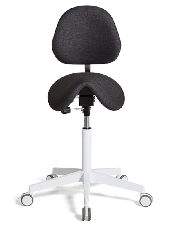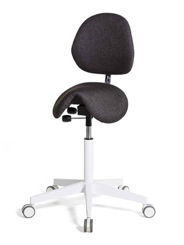 Sadelstol Skagen kombinerer en perfekt arbeidsstilling med en komfortabel sittestilling. Sadelstolen er formet som en cowboysadel, polstret med formstøpt skum og kledd med tekstil av høyeste kvalitet. Å sitte i ridende stilling gir en optimal ergonomisk kroppsholdning, noe som minsker risikoen for muskel- og skjelettproblemer. Sadelstol Skagen fås med tre forskjellige setemekanismer som på hver sin måte sikrer en ergonomisk sittestilling, noe som innebærer at du kan sitte lenge uten å føle tretthet i kroppen. Sadelstolen fås med hvitt understell og man kan velge mellom stoff i fem forskjellige farger.