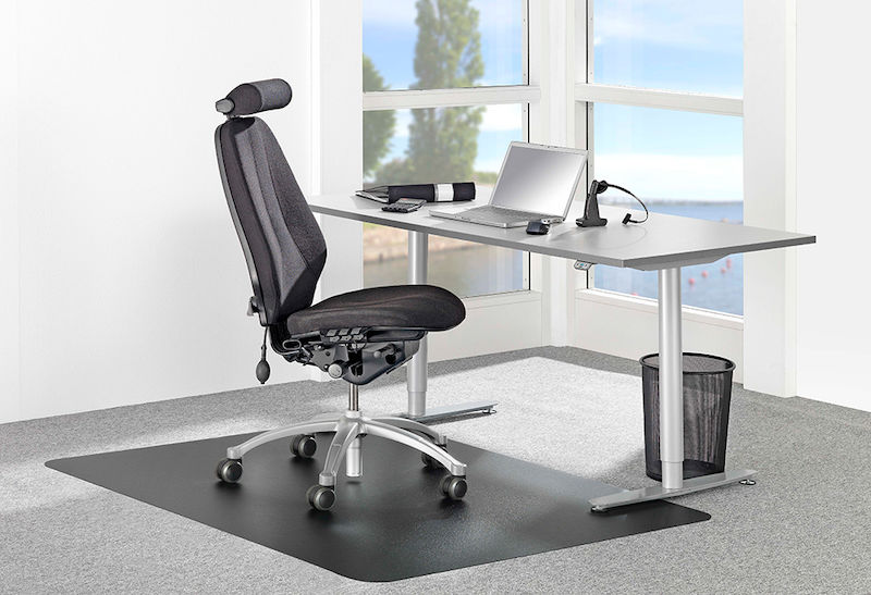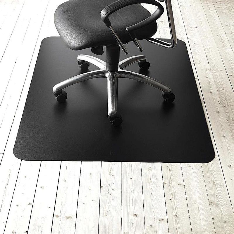 Gulvbeskyttelse Emmi, svart, LxB 1500 x 1200 mm. Slitesterk gulvbeskyttelse i svart polyvinyl med laminert bakside for godt grep. Effektivt på lyse gulv.