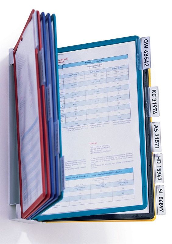 Veggstativ VARIO®, 10 paneler, 2-pakk. Finn informasjon som du bruker daglig, for eksempel prislister, katalogsider og hurtigmanualer, enkelt og hurtig ved hjelp av den "manuelle søkemotoren" VARIO®. Veggstativ i slitesterkt platestål. Lommer av polypropylen med stabil farget ramme og toppåpning. Matt, lite reflekterende, egnet for skanner. Utvidelsesmuligheter gjennom å plassere flere ved siden av hverandre.