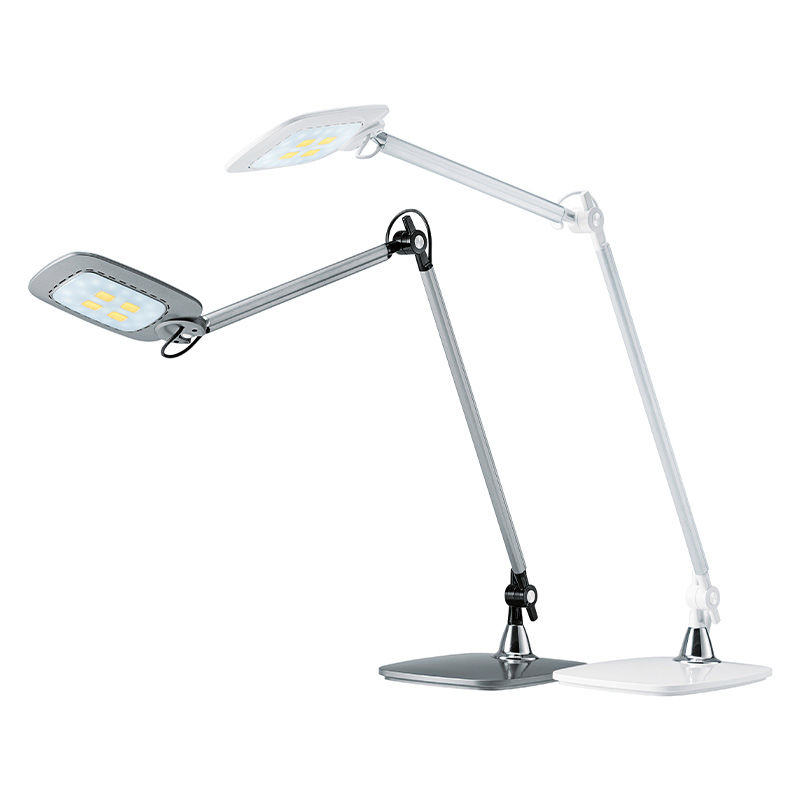 Skrivebordslampen har sensorbryter på lampehodet for enkel tenning og slukking med en håndbevegelse. Trinnløst dimbar inkl. minnefunksjon.