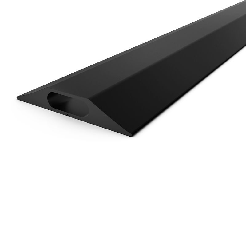Praktisk kabelbro som passer både på kontoret og i fabrikken. Laget av PVC-gummi i fargene helsvart eller svart med innfelt gul varsellinje langs begge sidene. En liten helling reduserer risikoen for å snuble og beskytter samtidig kablene. Ribbet underside holder kabelbroen på plass selv på litt glatte underlag.