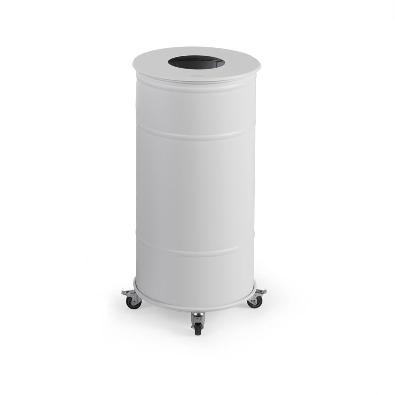 Avfallsbeholder Brooklyn Bin Big, H 810 mm, hjul, enkel med lokk, hvit. Ø 400 mm. Tønne i høy kvalitet, tidløs og klassisk design. Ø 330 eller 400 mm, i stål, pulverlakkert i matt farge. Sekkeholder i tønnen, tilpasset 70 liters sekker. Finnes som enkel, dobbel eller trippel i 3 ulike farger. Tønnen finnes i flere utførelser, på ben, hjul, betongfot eller som vegghengt modell.