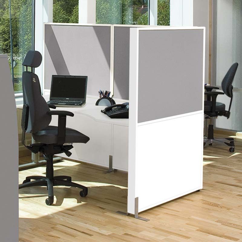 Silence med stoff fungerer også som oppslagstavle. Stoffet finnes i en lysegrå farge. Du kan velge mellom treverk i bjørk eller hvit laminat.