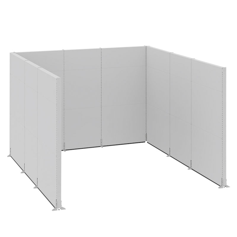 Skjermvegger Hans, kontor/industri, komplettmoduler, LxBxH 3730 x 3630 x 2500 mm. I arbeidsomgivelser med konstant støynivå sørger effektiv støyskjerming for mer konsentrasjon, presisjon og effektivitet. Akustikksystemene reduserer støybelastningen betydelig. De bidrar til å forebygge helseskader og unngå dyr produksjonssvikt.