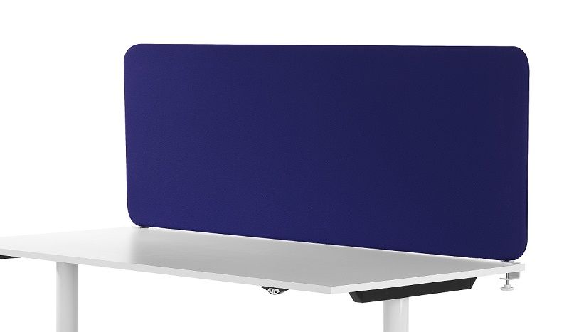 Bordskjerm Softline Event, B x H 800 x 450 mm, mørkeblå. Avskjerm og demp forstyrrende lyd og støy med bordskjermer. Skjermene har massiv treramme med 30 mm akustikkplate. Kledd med 100 % polyester laminert med lydabsorberende polyuretanskum. Testet og klasse A-godkjent i henhold til SP-norm SS-EN 20354 / NT ACOU 085. Lydabsorberende bordskjermer. Festes direkte til skrivebordet ved hjelp av bordfester av skrutypen. Bordbeslag selges separat.
