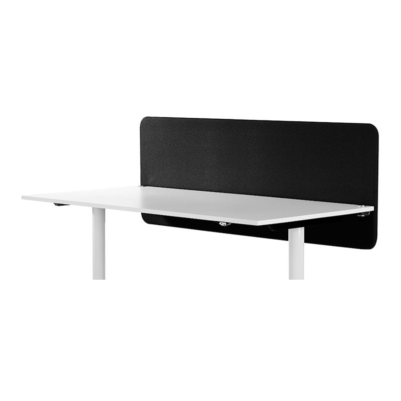 Bordskjerm Standard, runde hjørner, BxDxH 2000x30x650 mm, svart. Bordskjerm Standard er et begrenset og optimalisert utvalg av de mest solgte bordskjermene. Leveres i en komplett pakke der svarte bordbeslag inngår. Skjermen består av lydabsorberende fylling som er montert i en massiv treramme. Beslagene passer til rette og fasede bordkanter (fasing opp til 20 mm). Finnes i to farger, svart og grått.