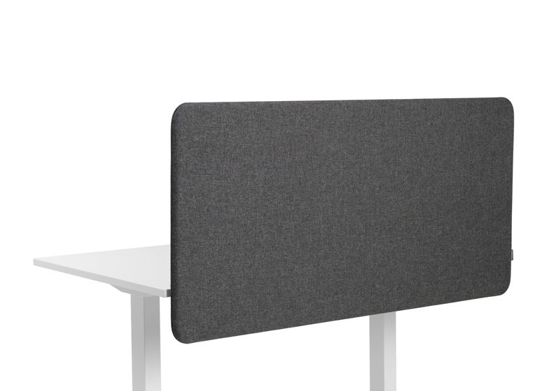 Bordskjerm Softline Salsa, nedhengende, BxDxH 600 x 30 x 650 mm, mørkegrå. Tekstilkledd lydabsorberende skjerm med moderne stoff i moderne farger. I arbeidsmiljøer med høy lydbelastning anbefales nedhengende bordskjerm som med større overflate har høyest mulig lydabsorbsjon. Kledd i 100 % polyester laminert med lydabsorberende polyuretanskum. Testet og klasse-A godkjent i henhold til SP norm SS-EN 20354 / NT ACOU 085. Festes direkte på skrivebordet med bordbeslag. OBS! Leveres uten bordbeslag, kjøpes separat.