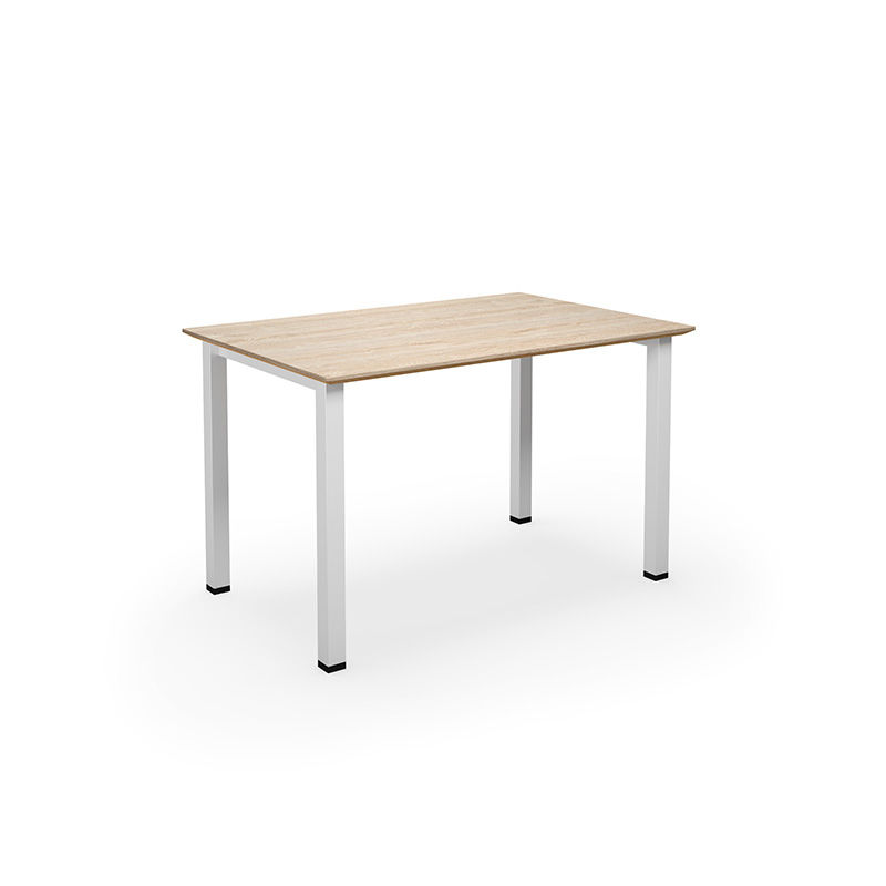 Bord i moderne design med en 25 mm tykk bordplate. Platen har fasede kanter, noe som gir et stilrent inntrykk av et tynt og moderne bord. De fasede kantene er laget for å passe inn i et moderne miljø med frittstående plassering av bordet. Rett plate med en slitesterk flate. Firkantede pulverlakkerte ben i stål gjør bordene stabile.