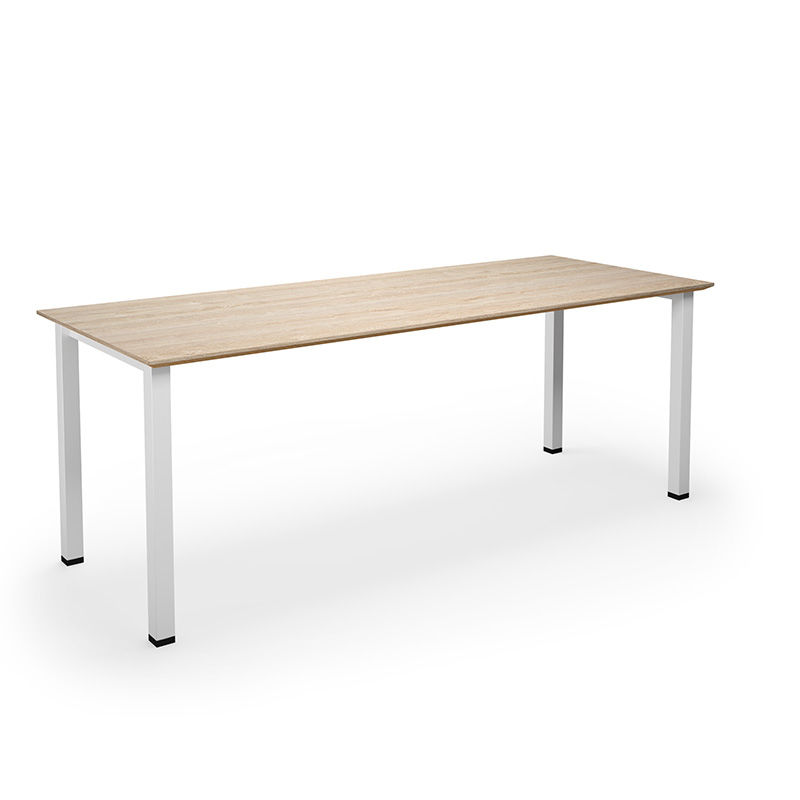 Bord i moderne design med en 25 mm tykk bordplate. Platen har fasede kanter, noe som gir et stilrent inntrykk av et tynt og moderne bord. De fasede kantene er laget for å passe inn i et moderne miljø med frittstående plassering av bordet. Rett plate med en slitesterk flate. Firkantede pulverlakkerte ben i stål gjør bordene stabile.