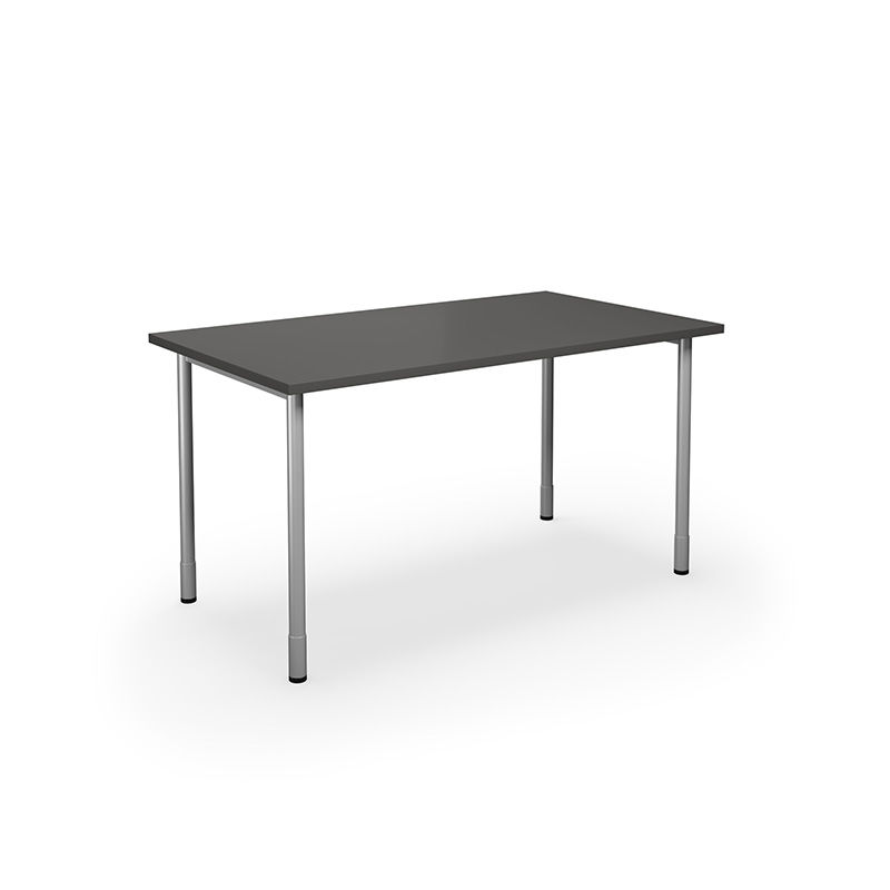 Bord DUO-C, LxB 1400x800 mm, mørkegrå/sølv. Bord DUO-C med laminatplate og runde ben som er justerbare i høyde 700-800 mm inkl. plate. Bordet kan kompletteres med en hengende skuffeseksjon. Laminat: Plate belagt med bøk-, bjørk, eik- eller hvitfarget dekor med kantlist av ABS-plast. Bordplaten er hard og svært ripe- og slagbestandig. Fargen er konstant, dvs. den endrer seg ikke utseendemessig når den eldes.