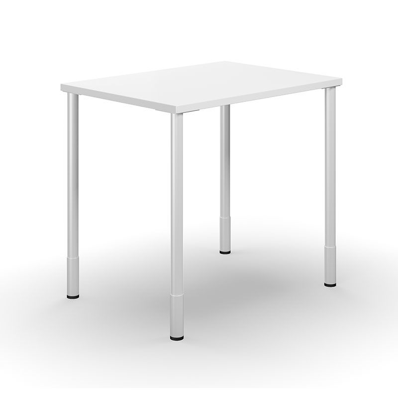 Bord DUO-C, LxB 800x600 mm, hvit/hvit. Bord DUO-C med laminatplate og runde ben som er justerbare i høyde 700-800 mm inkl. plate. Bordet kan kompletteres med en hengende skuffeseksjon. Laminat: Plate belagt med bøk-, bjørk, eik- eller hvitfarget dekor med kantlist av ABS-plast. Bordplaten er hard og svært ripe- og slagbestandig. Fargen er konstant, dvs. den endrer seg ikke utseendemessig når den eldes.
