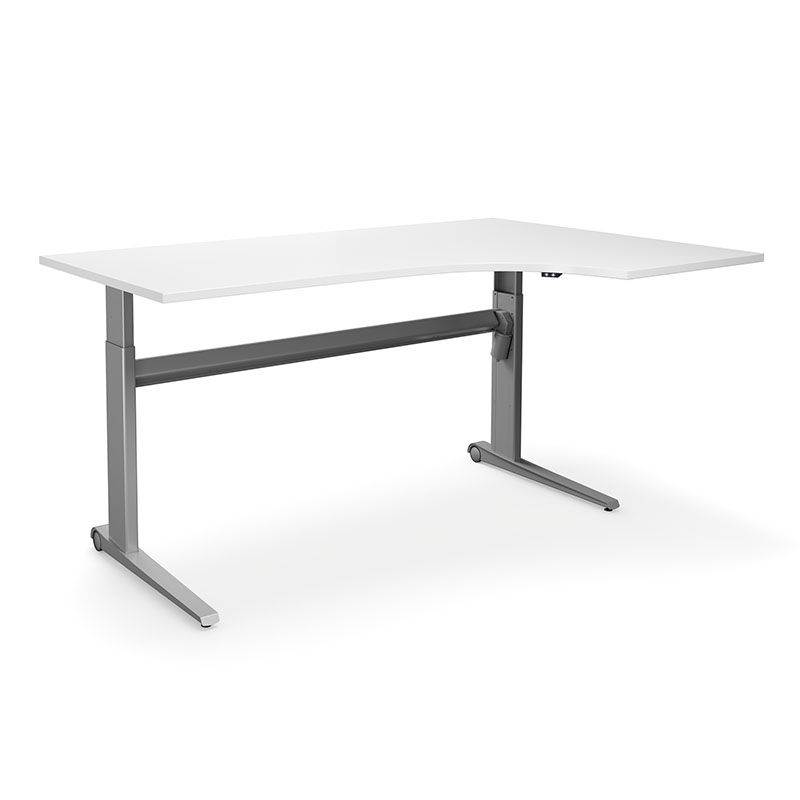 Hev og senk hjørneskrivebord Dallas, venstre, LxB 1800x1200 mm, hvit/sølv