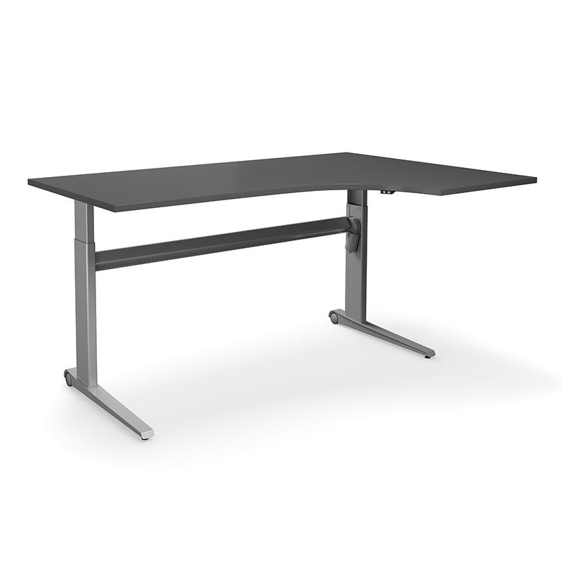 Hev og senk hjørneskrivebord Dallas er et høydejusterbart skrivebord i et moderne og stilfullt design. Justerbar høyde 685 – 1250 mm inkl. plate. Hastighet 25 mm/s. Maks. belastning 80 kg spredt last. Stativet har 2 hjul som gjør det enkelt å flytte bordet. Plate av bøke-, bjørke-, eike, hvit- eller grå laminat, tykkelse 25 mm. Laminat: Plate belagt med bøke-, bjørke, eike- eller hvitfarget dekor med kantlist av ABS-plast. Bordplaten er hard og svært ripe- og slagbestandig. Fargen er konstant, dvs. den endrer seg ikke utseendemessig når den eldes.