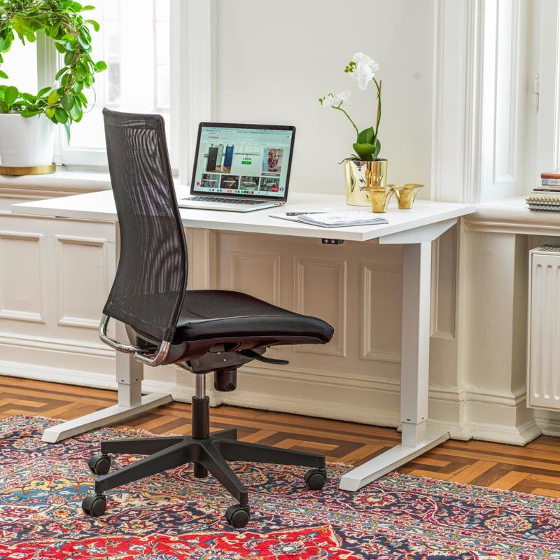 Hev og senk skrivebord Venla er et enkelt og moderne elektrisk høydejusterbart skrivebord til en meget konkurransedyktig pris. Ønsker du deg et lett og elegant skrivebord av god kvalitet og til en god pris, er hev og senk skrivebordet Venla et sikkert valg. På tross av den lave prisen er bordet fremstilt med fokus på kvalitet og ergonomi. Bordplaten er svært motstandsdyktig mot riper og slag. Fargen blekner ikke med alderen. Bordet tåler en fordelt belastning på opptil 80 kg.