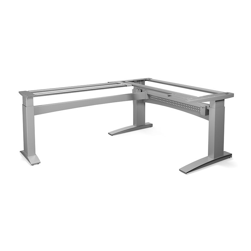 Hev og senk stativ Denver, 3-bens stativ, sølv. Justerbar høyde 630–1200 mm, hastighet 22 - 30 mm/s synkronlift. Maks. belastning 150 kg (spredt last). Stativ i svart strukturlakk RAL 9004 eller sølv RAL 9006. Bredde på stativet er 1560 mm. Platen finnes i både laminat og finér. Laminat: Plate belagt med bøke-, bjørke, eike-, hvit- eller grå farget dekor med kantlist av ABS-plast. Bordplaten er hard og svært ripe- og slagbestandig. Fargen er konstant, dvs. den endrer seg ikke utseendemessig når den eldes. Finer: Plate belagt med et tynt sjikt av ekte tre i bøk eller bjørk med kantlist av massivtre. Overflaten har en naturlig trefølelse og er mykere enn laminat. Akkurat som i naturen eldes tre, og med tiden får det en vakker patina som bare et naturlig materiale kan få.