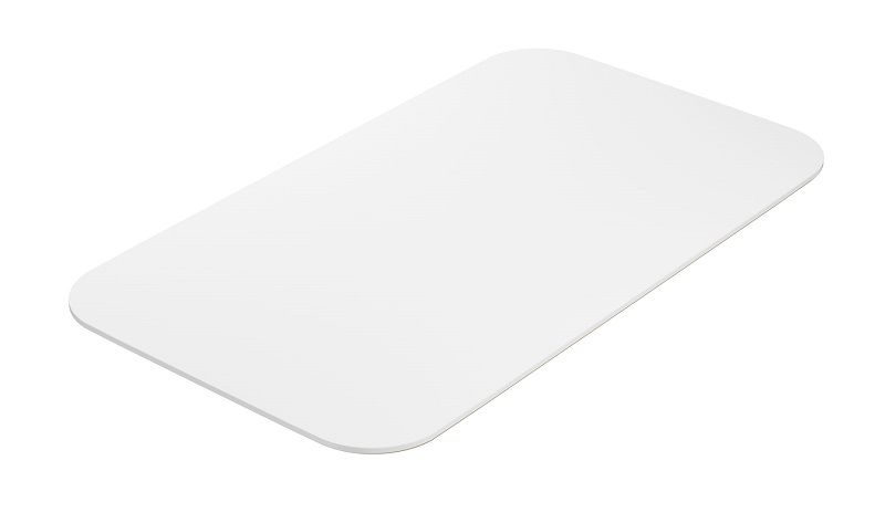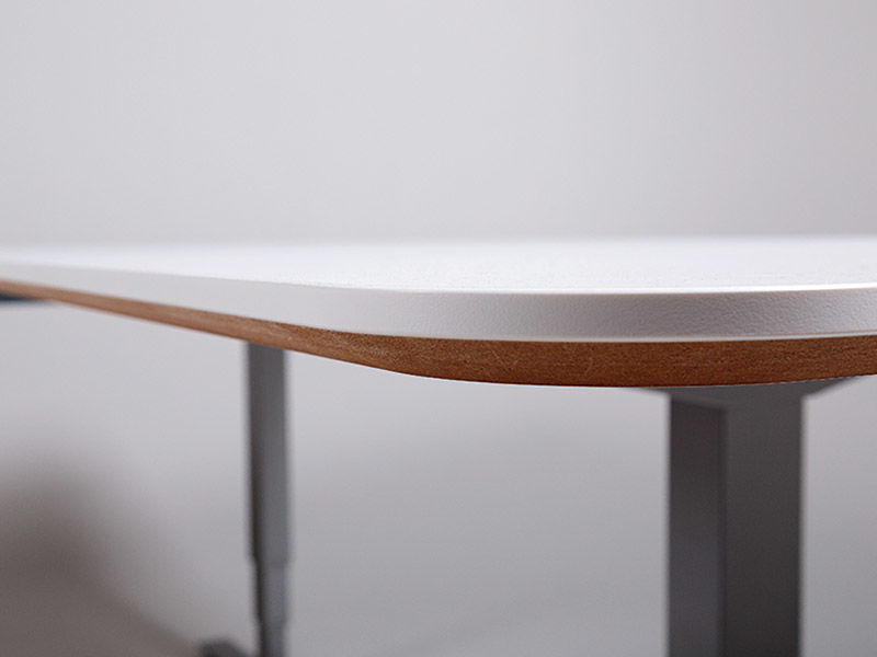 Skrivebordsplate Trend, runde hjørner, LxB 1400x800 mm, hvit. Skrivebordsplate Trend er vår nye serie av moderne bordplater som er tilpasset hev-/senkbare stativ. Trend har fasede kanter og finnes med både rette og runde hjørner. Det er en tynn og moderne bordplate med et stilrent uttrykk. Passer godt i kontormiljøer der skrivebordet står i sentrum. Bordplaten er produsert i 25 mm tykk MDF, og er belagt med hvit eller eik laminat samt en 10 mm hvit eller eik kantlist av ABS-plast.
