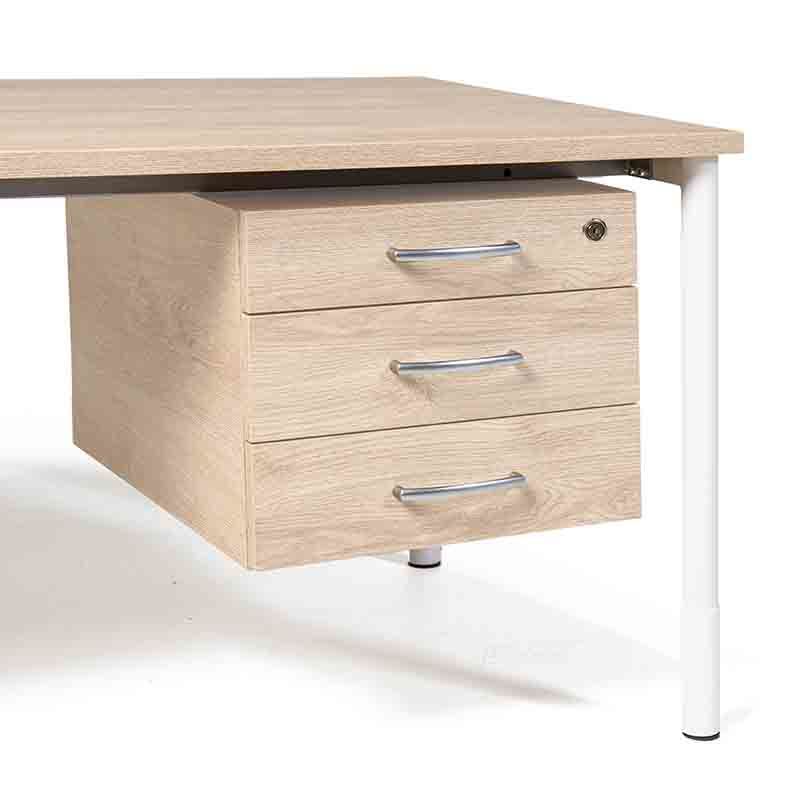 Skuffeseksjon til skrivebord Duo, eik laminat. Legg til en skuffeseksjon til ditt skrivebord Duo. Finnes i flere ulike laminatfarger. Skuffene har sentrallås. Passer ikke til bord i størrelse 800x600 og 1200x800 mm.