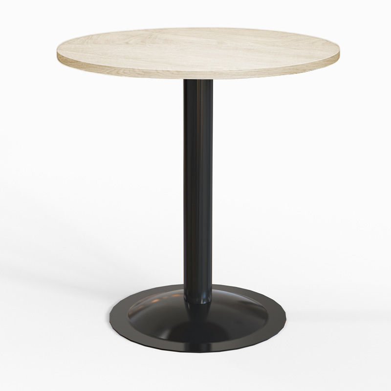 Cafebord Sputnik, diameter 900 mm, svart stativ, eik. Sølvlakkert stålunderstell med bordplate i bøk-, bjørk, eller eiklaminat.