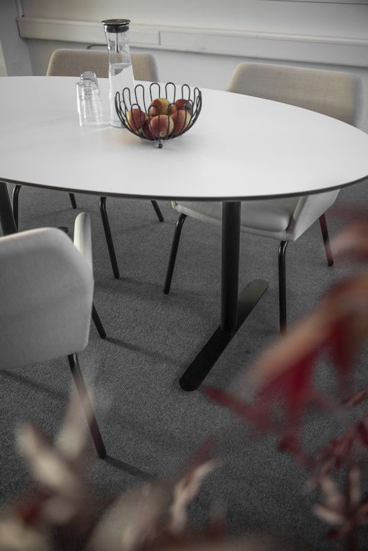 Konferansebord, ellipseformet Elips, høyde 720 mm, BxD 3200 x 1200/800 mm, hvit/svart. Konferansebord Elips – fås i 6 forskjellige størrelser.