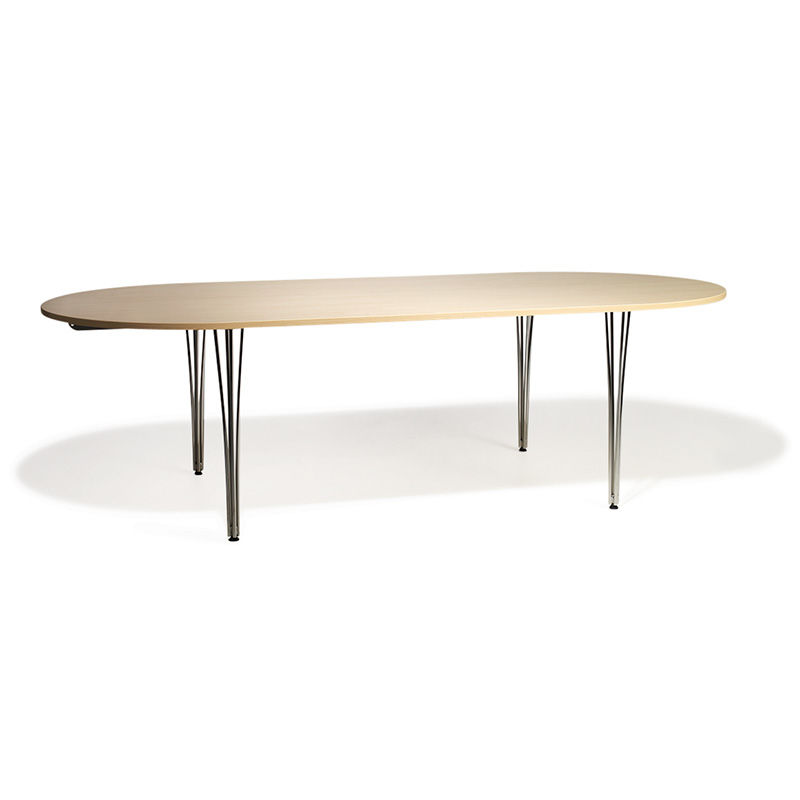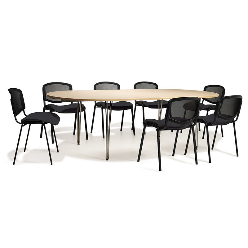Konferansebord Taormina, 8-10 sitteplasser. Et romslig konferansebord med et stilfullt understell som gir bordet et lett inntrykk. Bordplaten har avrundede kanter. Finnes i to utførelser av bordplater, bjørk eller bøk laminat.
