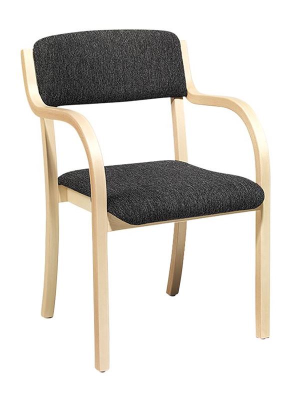 Konferansestol Chelsea, bjørk, grå. Stol av formpresset bøk som kan stables. Fabrikkmonterte koblingsbeslag som tilbehør.
