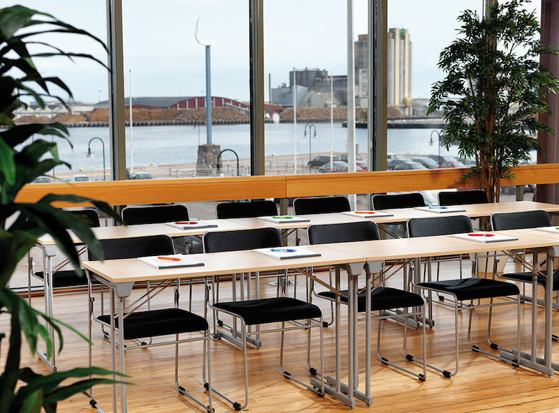 Stabile og kraftige konferansebord med sammenleggbare ben. Stativene er laget av flatovale stålrør for ekstra stabilitet, og er utstyrt med justerbare føtter.