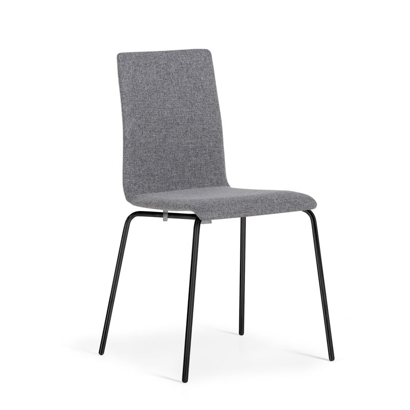 Skallstol Elin, grå/svart, 4-pk. Utmerket for kantinen eller konferanserommet. Formpresset sete og rygg i ett stykke. Sete og rygg er polstret og kledd med stoff. 60.000 Martindale. Ben i forkrommet stål. B 500 mm, D 460 mm, sittehøyde 450 mm. Totalhøyde 855 mm. Selges i pakke med 4 stk. Leveres umontert.