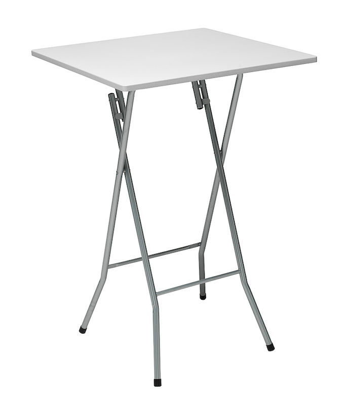 Ståbord, sammenleggbart, LxB 700x700 mm, hvit plate. Bord i stabil konstruksjon. Enkelt å sette opp og legge sammen. Lakkert stålrørsunderstell. Plate i svart eller hvit MDF. Høyde 1060 mm.