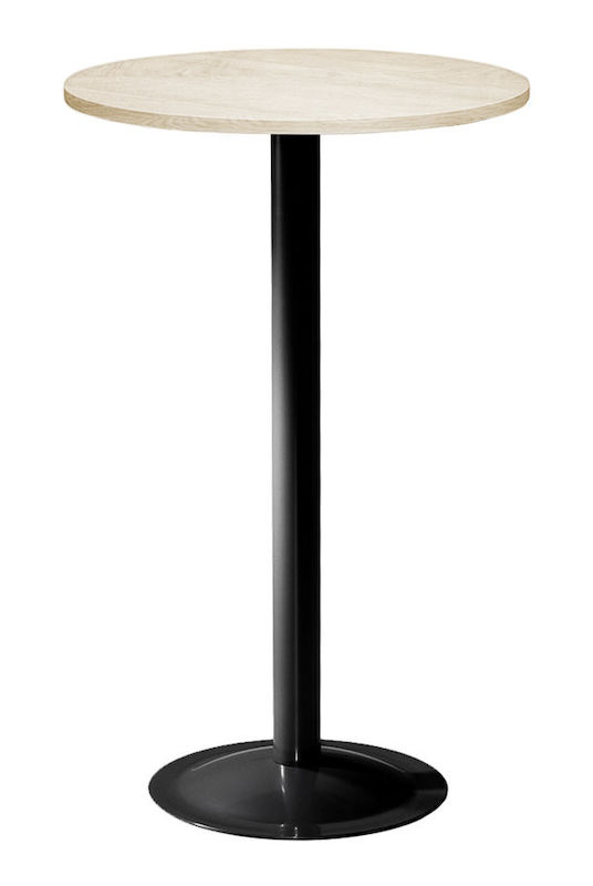 Ståbord Sputnik, høyde 1100 mm, diameter 700 mm, eik/svart. Svartlakkert stålunderstell med bordplate i bøk laminat.