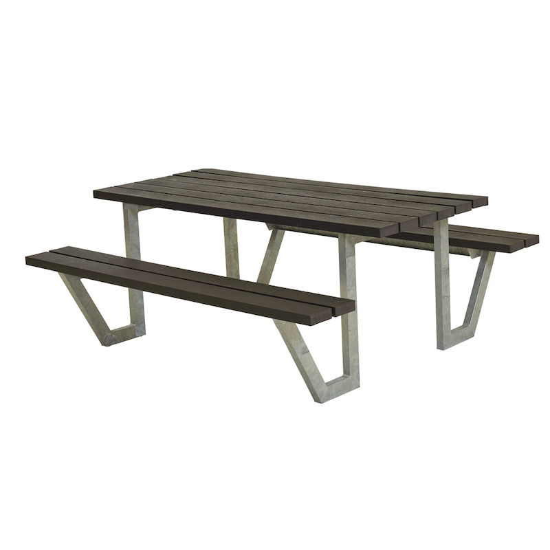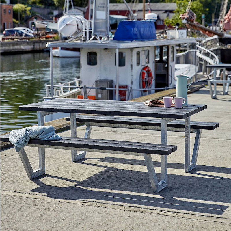 Benkebord for 6 personer Erik, gjenvunnet plast, svart. Sittegruppe utendørs. Ramme av varmgalvanisert stål, egnet for 6 personer.