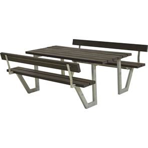 Benkebord for 6 personer Erik, sertifisert furu, svart, med ryggstøtte. Sittegruppe utendørs. Ramme av varmgalvanisert stål, egnet for 6 personer.