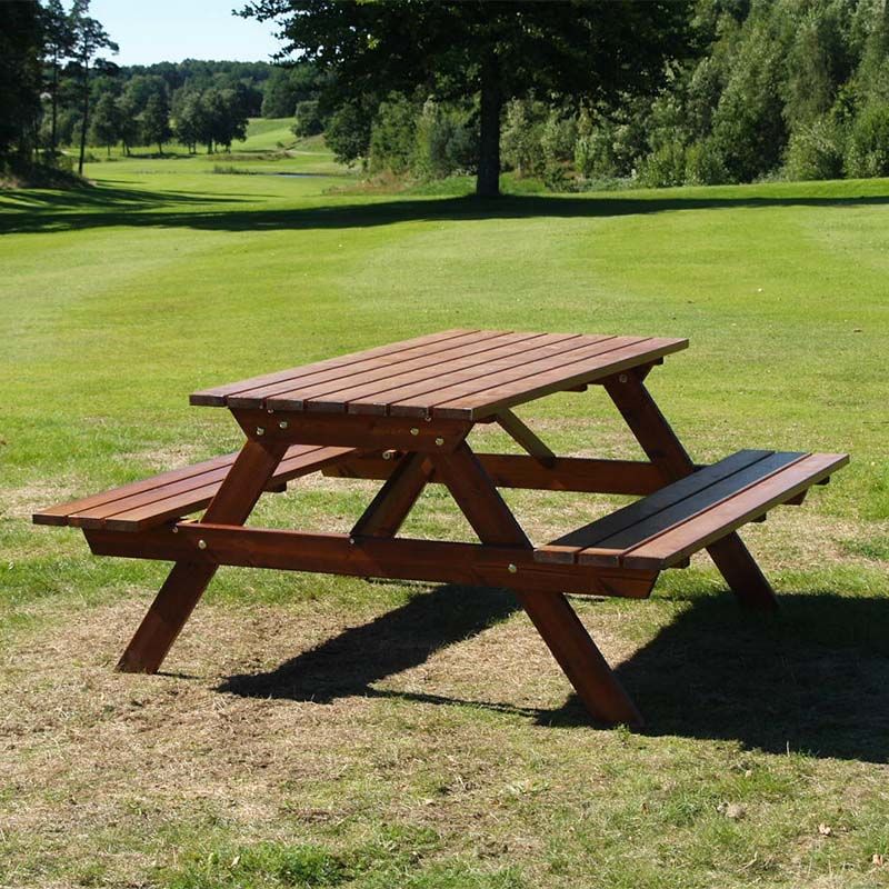 Piknikbord med solide planker. Lett å vedlikeholde, ideelt for uteplasser, rasteplasser og kiosker.